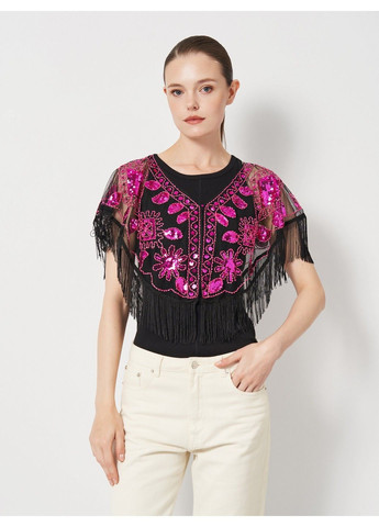 Наша накидка Icon Fringe Trim Open Front Sequin – это стильный предмет для весны и осени. Он имеет однобортный дизайн с длинными рукавами, асимметричным подолом и ровной посадкой. Изготовлена из ткани с небольшой эластичностью, украшена бахромой и черными пайетками.