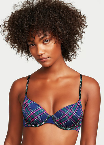 Бюстгальтер Victoria´s Secret. Эффектный бюст выполнен из гладкой, приятной на ощупь ткани.  Принт в виде клетки и цветы на бретелях и косточках. Чашка с косточками. Регулируемые бретели, сзади отстегиваются при необходимости. Застежка сзади на 2 крючка, 3 позиции застежки. Отличное качество.
