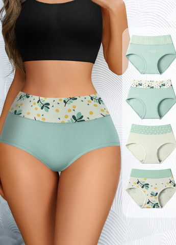 Набор из 4 пар трусиков слепых разного цвета с цветочным принтом. Очень удобные и приятные на ощупь. Состав: 95% хлопок, 5% спандекс