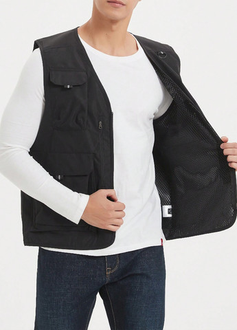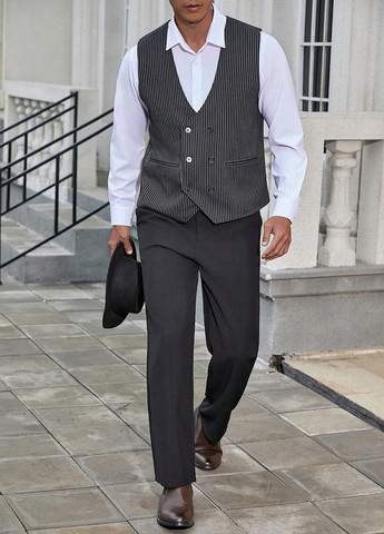 Мужской жилет Manfinity Homme, передний жилет с карманом и пряжкой: Имеет карман и дизайн с пуговицами спереди. Классический уличный стиль с пряжкой-клапаном. Изготовлен из ткани (не тянется). Однобортная планка и V-образный вырез. Жилет без рукавов для повседневного образа. Стандартный крой, короткая длина.