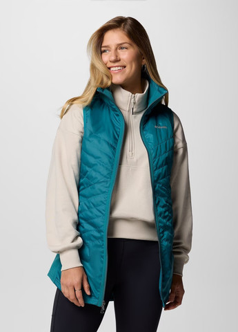 Женский жилет Columbia. Идеальный удлиненный жилет, который всегда под рукой при смене сезонов, изготовлен из водостойкой ткани и искусственного пухового утеплителя для защиты от стихии. Водостойкая ткань отводит влагу с помощью материалов, которые отталкивают воду, поэтому вы остаетесь сухими в условиях умеренной влажности. Искусственный пуховый утеплитель удерживает тепло даже во влажном состоянии и обеспечивает мягкость, как у пуха, для дополнительного комфорта в холодную погоду. Воротник стойка, внутри утеплен флисом. Защита подбородка предотвращает натирание. Двойная передняя молния для дополнительной мобильности. Внутренний карман на липучке и карманы для рук на молнии надежно защищают ценные вещи. Отличное качество.