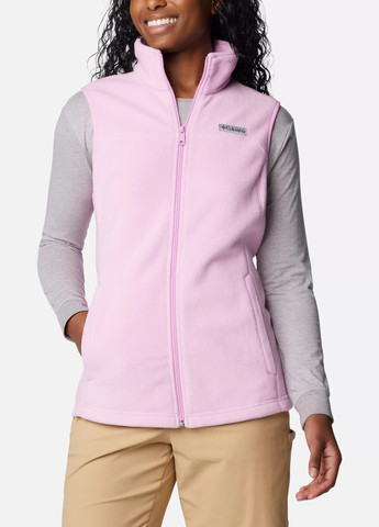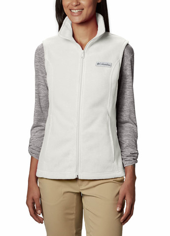 Женская флисовая жилетка Columbia. Этот флисовый жилет в современном классическом стиле является идеальным слоем для сохранения тепла. Современная классическая посадка. Теплая и очень мягкая жилетка на флисе. Застегивается на молнию. Нашивка с логотипом спереди. Два кармана по бокам на молнии. Воротник - стойка. Отличное качество.