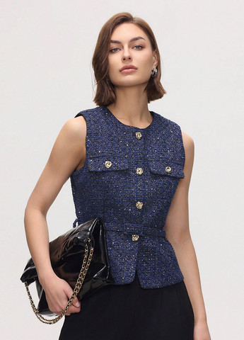 Жилетка с леопардовым принтом и косым кроем - выбор для тех, кто стремится подчеркнуть свою индивидуальность. Диагонально расположенные пуговицы добавляют оригинального акцента, а леопардовый принт привносит яркий характер, делая жилетку центром внимания. Крой элегантно облегает фигуру, подчеркивая ее черты, а имитация карманов добавляет декоративного шарма. Эта жилетка легко сочетается с базовыми вещами, добавляя к каждому ансамблю яркий акцент и уверенность в себе.