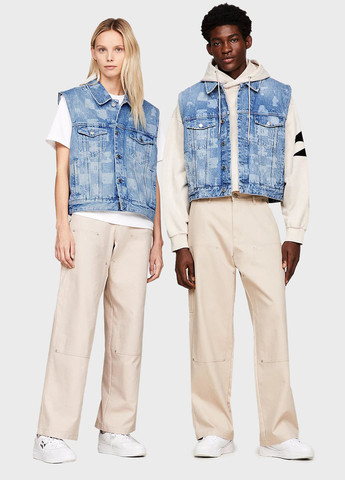 Женский джинсовый жилет Tommy Hilfiger. Стильный жилет с отложным воротником и необработанным нижним краем. Укороченный фасон. Застежка - пуговицы спереди. Два нагрудных накладных кармана на пуговице. Эластичная джинсовая ткань. Отличное качество.