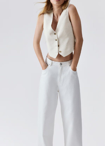 Жилет прямого силуэта без подкладки, выполнен из кашемира. Ткань мягкая и теплая, прочная и износоустойчива, хорошо держит форму. Не колется, по этому не требует дополнительной подкладочной ткани. Растяжимость ткани низкая (1-2 см). По переду накладные карманы, в боковых швах - шлицы. По шлицам - застёжка на петли и пуговицы. Спинка удлиненная.