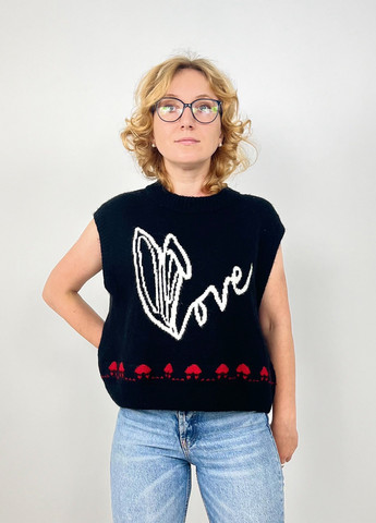 ЖИЛЕТ-СВИТЕР ОВЕРСАЙЗ.No Fear x H&M. Свободный жилет-свитер с V-образным вырезом, жаккардовой вязки, с резинкой по горловине, пройм и подолу. Ширина плеч 48см, полуобхват груди 54см, длина изделия 64см.