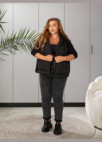 Черный жилет с капюшоном для женщин. Ткань мягкая, гибкая и эластичная.