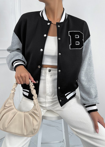 Куртка-бомбер для женщин. Она имеет бейсбольный воротник, спущенное плечо. Куртка изготовлена из трикотажного полотна. Крой свободный. Рекомендации по уходу: машинная стирка или профессиональная химчистка.