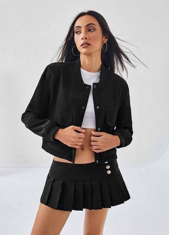 Женская куртка-бомбер Chiquease темно-синего цвета. Эта повседневная куртка-бомбер с бейсбольным воротником и длинными рукавами, свободный крой. Куртка выполнена из слегка эластичной замши. Машинная стирка, не химчистка.