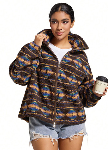 Цвет Темно-коричневый / Застежка На молнии / Узор Орнамент / Сезонность Демисезон