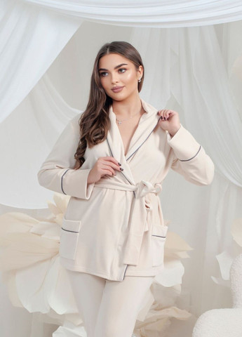 Этот элегантный и утончённый велюровый костюм — идеальный выбор для тех, кто ценит комфорт и стиль даже дома. Комплект состоит из халата и брюк, украшенных кантами и удобными карманами, которые добавляют практичности и изысканности. Особенности: Материал: Мягкий и приятный на ощупь велюр Состав комплекта: Халат и брюки Дизайн: Кофтa под пояс с брюками для идеальной посадки по фигуре Карман: Удобные карманы для хранения необходимых мелочей Крой: Свободный крой для комфортного ношения Стиль: Элегантный и утончённый домашний стиль Этот костюм создан для того, чтобы вы чувствовали себя комфортно и уютно в любое время, не отказываясь от элегантности. Идеальный выбор для домашнего отдыха и спокойных вечеров! Артикул: 8016