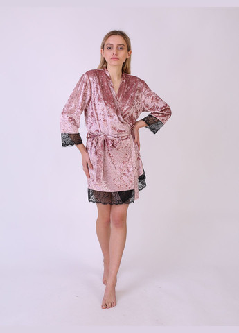 Мягкий и комфортный женский халат в домашнем стиле, созданный для уюта и элегантности. Модель имеет свободный крой, не сковывает движений, а V-образный вырез красиво подчёркивает шею и зону декольте. Изготовлен из приятного на ощупь велюра с нежной плюшевой текстурой. Пояс на талии позволяет регулировать посадку по фигуре, а изящное кружево придаёт образу женственность и утончённость. Карманы отсутствуют, что делает силуэт лёгким и аккуратным. Артикул: 5001