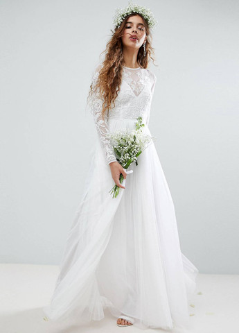 Платье-миди ASOS (002156) ASOS EDITION Willow embroidered twist front midi wedding dress, Ivory. Эксклюзивное изящное и элегантное приталенное платье из органзы, декорированное вышивкой, с открытыми плечами, рукав-буф длинный на резинке вверху и внизу, платье на хлопковой подкладке, застежка на молнии, спина открытая, застежка вверху на пуговице. Материал – органза с вышивкой. Состав: верх: 100% подиестер; подкладка: 60% хлопок 40% вискоза. Страна бренда – Великобритания, страна производства – Индия