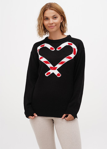 Декорированный фабричным вязаным узором, круглый вырез и длинные рукава создают классический и удобный силуэт. Манжеты придают завершенность образу. Разноцветная цветовая комбинация делает свитер ярким акцентом праздничного гардероба.