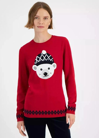 Женский свитер Tommy Hilfiger. Мягкий и уютный свитер с круглым вырезом. Круглый вырез горловина. Эластичные манжеты, горловина и подол в рубчик. Спереди уникальный рисунок в виде мишки, украшенный помпоном. На подоле и манжетах оригинальный орнамент. Машинная вязка, приятный к телу материал. Стильный и очень мягкий свитер. Отличное качество.