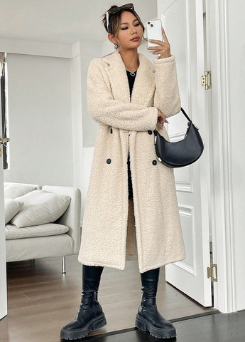 Женское пальто SHEIN EZwear – чёрно-белое. Это длинное пальто согреет зимой (ниже 10°C/50°F). Оно украшено чёрно-белым узором и имеет двубортный крой. Пальто дополнено поясом и длинными рукавами. Подкладка – 100% полиэстер. Ткань – смесь полиэстера, вискозы, полиамида, акрила и шерсти. Машинная стирка или профессиональная химчистка.