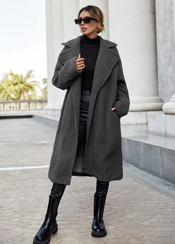 Цвет Черно-белый / Сезонность Зима / Стиль Кэжуал / Декор Без декора / Материал верха Полиэстер, Шерсть / Бренд SHEIN / Узор Гусиная лапка / Длина изделия Длинное / Длина рукава Длинный / Капюшон Без капюшона