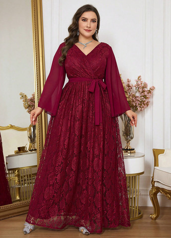 Шифоновый наряд Graceveil больших размеров. Этот наряд представляет собой длинную струящуюся накидку с длинным рукавом и платье. Платье предназначено для скромных случаев. Платье состоит из ткани на основе полиэстера и шифонового накладного элемента. Этот комплект подходит для свадеб и праздничных мероприятий. Рекомендации по уходу: машинная стирка или профессиональная химчистка.