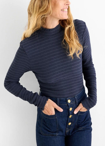 Цвет Темно-синий / Состав 47% хлопок, 47% модал, 6% эластан / Сезонность Демисезон / Узор Полоска