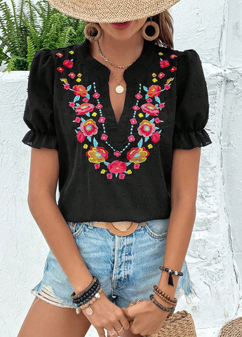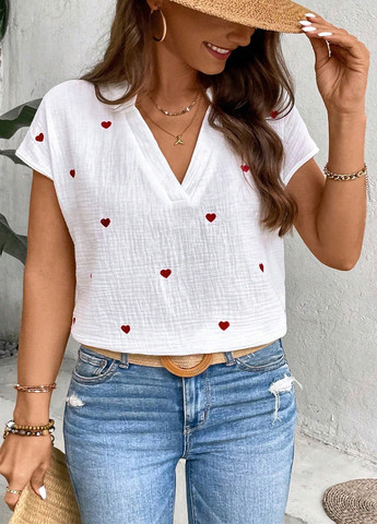 Рубашка с расклешенными рукавами и принтом в виде сердец – женская рубашка с длинным рукавом. Эта повседневная рубашка с принтом в виде сердец и расклешенными рукавами подойдет как для повседневной носки, так и для праздничных случаев, например, Дня святого Валентина. Рубашка имеет воротник-стойку и свободный крой. Изготовлена из смеси полиэстера. Можно стирать в стиральной машине или чистить в химчистке.