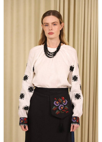 Элегантная женская вышиванка MOTYV "Борщевская Роза" Роскошная вышитая рубашка "Борщевская Роза" от бренда MOTYV является современным воплощением борщевской техники, известной своей густой черной вышивкой. Ключевые преимущества: Материал: 100% натуральный лен – дышащая, экологичная и гипоаллергенная ткань. Дизайн: Белое полотно и объемные рукава-фонарики. Вышивка: Качественная машинная вышивка крестом черными нитями на рукавах. Манжеты декорированы дополнительным цветочным орнаментом. Крой: Свободный крой, подходящий ко всем типам фигур. Застегивается на пуговицы сзади. Эта вышиванка станет не только одеждой, но и настоящим оберегом и символом вашего стиля.