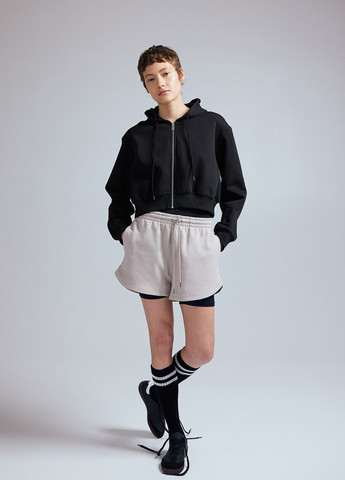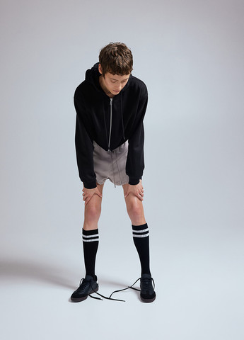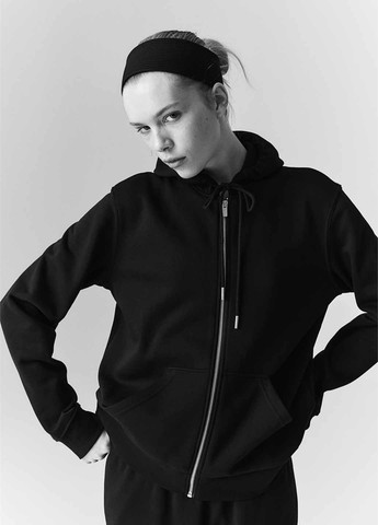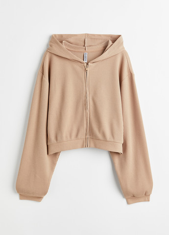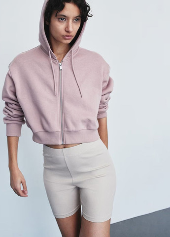 Укороченная толстовка с капюшоном на молнии из вафельного джерси. Заниженная линия плеча, широкие рукава в рубчик и резинка по низу. Возможно повреждение внутренней бирки, а также отсутствие бумажной бирки. Для размера S: ПОГ-54 см, длина-44 см.