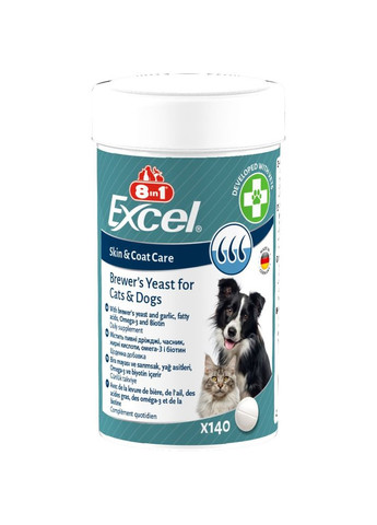 витаминная добавка в рацион собак больших пород для поддержания кожи и шерсти, в основе пивные дрожжи, так же в состав входит экстракт чеснока; добавка подойдет как в профилактических целях, так и для лечения витаминного дисбаланса, при нарушении пищеварения, при плохом аппетите, потере веса, ослабленном иммунитете; можно давать в межсезонье, чтобы собака легче переносила изменение погодных условий. Ингредиенты: пивные дрожжи (saccharomyces cerevisiae), стеариновая кислота, глицерин, чеснок, сафлоровое масло, диоксид кремния, жир тунца. Аналитический состав (средние значения): сырой белок – 43%, сырой жир – 7%, сырая клетчатка – 1%, зола – 9%, влажная – 8%. Витамины: Витамин В1 – 800 мг/кг, витамин В2 – 500 мг/кг, витамин В6 – 50 мг/кг, биотин – 1900 мкг/кг, ниацин – 1200 мг/кг Микроэлементы: железо – 1914 мг/кг, медь – 2,5 мг/кг, медь – 2,5 мг/кг, 3270 мг/кг, кобальт – 114 мг/кг Рекомендуемые нормы кормления (грамм/день): Давать собаке ежедневно по 1 таблетке на каждые 25 кг веса животного (перед кормлением). Рекомендованный курс применения 14-30 дней. Изменение дозировки или повторный курс по показаниям. При комнатной температуре в плотно закрытой упаковке, в недоступном для детей и животных. Срок годности: 27 месяцев с момента изготовления. Номер партии и срок годности указаны на дне упаковки. Использовать только для животных Фасовка: 80 таблеток