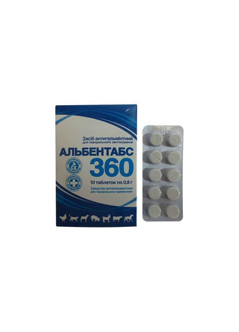 Плоскоцилиндрические таблетки с полоской и фаской от белого до серого со специфическим запахом. Состав 1 г препарата (дна таблетка) содержит: действующее вещество альбендазол – 360 мг; и вспомогательные вещества. Фармакологические свойства ATCvet QP52А, противотрематодные ветеринарные препараты (ATCvet QP52АС11, альбендазол) Действующее вещество препарата - альбендазол - метил [5 - (пропилсульфанил)-1n-бензимидазол-2-ил] карбамат, относится к группе бензимида Альбендазол тормозит белковый (тубулярный) синтез, в результате чего нарушается поступление и внутриклеточная транспортировка питательных веществ и обмен аденозинтрифосфорной кислоты и глюкозы. Снижаются митохондриальные реакции из-за торможения фумаратредуктазы, что вызывает уменьшение количества гликогена и гибели паразитов от истощения. Дегельминтизация крупного рогатого скота, овец, коз, лошадей, свиней, собак, кошек и птицы при следующих гельминтозных заболеваниях: - трематодозы: фасциолез (Fasciola hepatica), дикроцеллиоз (Dicrocoelium lanceatum), опикосизм; - цестодозы: мониезиоз (Moniezia expansa, Moniezia benedeni), тизаниезиоз (Thysaniezia giardi), дипилидиоз (Dipylidium caninum) – нематодозы: гемонхоз (Haemonchus contortus, Haemonchus placem), буностомоз агостомоз (Oesophagostomum venulosum, Oesophagostomum radiatum, Oesophagostomum dentatum), нематодироз (Nematodirus filicollis,; Nematodirus spathiger), остертагиоз (Ostertagia circumcincta), стронгилоидоз (Strongyloides papillosus, Strongyloides ransomi), трихостронгилез ( параскароз (Parascaris equorum), трихуроз (Trichuris vulpis, Trichuris suis, Trichuris ovis), хабертиоз (Chabertia ovina), токсокароз (Toxocara canis, Toxocara leonina), анкилостомоз (Ancylostoma caninum), унцинариоз (Uncinaria stenocephala), оксиуроз (Oxiulina).