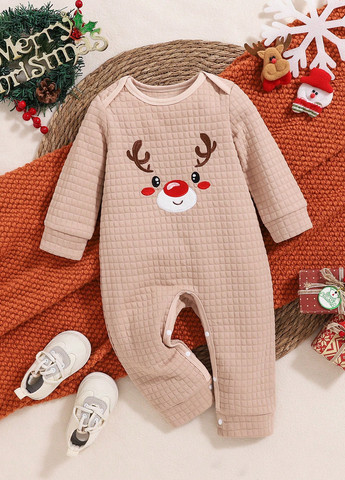 Комбинезон Persoplay Kids. Он украшен простой вышивкой в виде оленя. Модель имеет круглый вырез и стандартный крой. Ткань слегка эластичная.