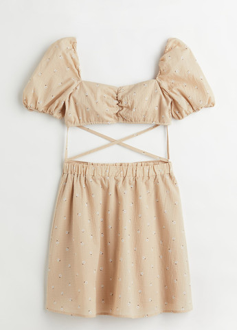 H&M молочное кэжуал платье клеш, с открытой спиной однотонное с вырезами с коротким рукавом хлопок - производство – Китай бренда H&M также покупают с такими товарами