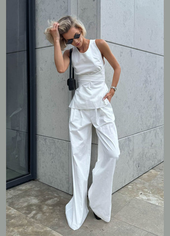 Товары, интересные покупателям jadone Fashion стильный костюм двойка из льна брючный однотонный черный лен производство — Украина на сезон "Лето"