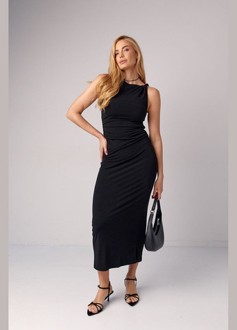 Lurex розовое деловое силуэтное платье миди без рукавов с драпировкой 9135 однотонное бифлекс - производство – Турция бренда Lurex также покупают с такими товарами