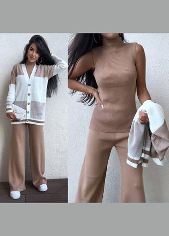 Топ товаров в категории костюмы и пиджаки, которые интересны покупателям vakko кежуал костюм тройка с кофтой и топом под горло тройка, брючный серо-бежевый акрил, шерсть производство — Турция