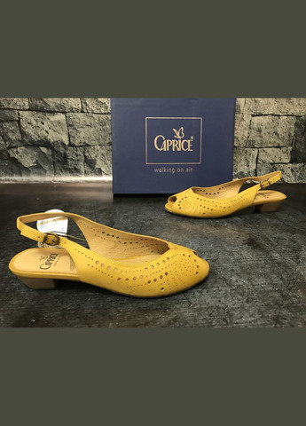 Товары, интересные покупателям caprice Горчичные босоножки на среднем каблуке натуральный нубук пряжка перфорация каблук- производство - Германия на сезон "Лето"