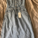 Товары, интересные покупателям c&A светло-синее джинсовое платье с открытыми плечами однотонное с потертостями без рукава хлопок, джинс - производство – Германия на сезон "Лето"
