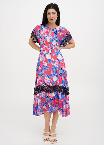 Vicolo темно-синее кэжуал платье клеш с цветочным принтом с воланами, кружевное с коротким рукавом вискоза - производство – Турция бренда Vicolo также покупают с такими товарами