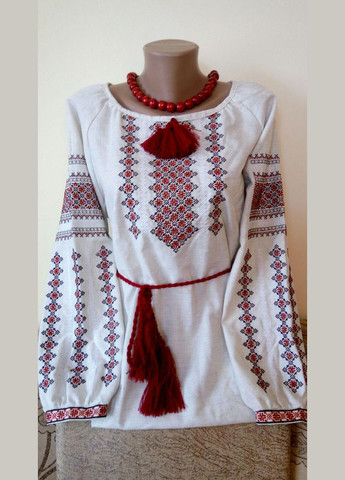 Топ товаров в категории блузы и туники, которые интересны покупателям женская вышитая рубашка на льне с красным орнаментом "Нежная" с красным на льне 48 Прикарпатські Вишиванки узор-цветочный хлопок
