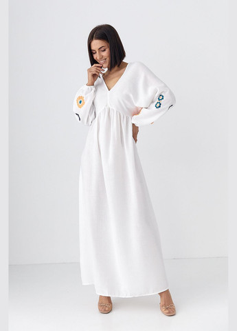 Длинное платье с вышитыми цветами – кофейный цвет L (sku_12875) узор-украинская символика на завязках праздничная трикотаж бренда No Brand также покупают с такими товарами