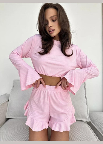 No Brand Піжамний комплект Зефірка пижама женская в рубчик зефирка топ с рукавами шортики топ + шорты однотонная черная повседневный, домашний производство — бренда No Brand также покупают с такими товарами