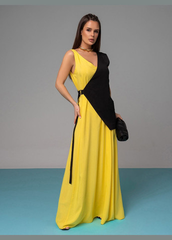 Товары, интересные покупателям no Brand стильный сарафан со съемной вставкой-полужилетом на пряжке бежевый праздничный, кэжуал, коктейльный, вечерний хлопок производство - Украина на сезон "Лето"
