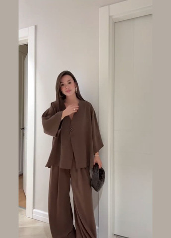 Топ товаров в категории костюмы и пиджаки, которые интересны покупателям monCher женский костюм из льна свободного кроя. брючный черный лен производство — Украина