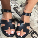 Топ товаров в категории босоножки и сабо, которые интересны покупателям garti Черные босоножки без каблука натуральная кожа пряжка без декора каблук- производство - Украина