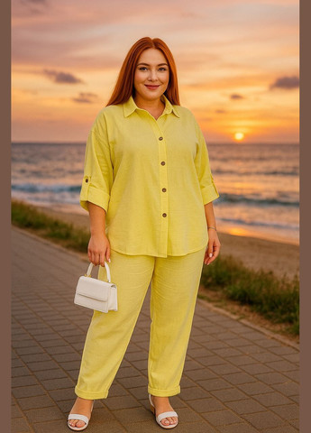 Товары, интересные покупателям style Point женский костюм льняной с рубашкой, брючный оливковый лен производство — Украина на сезон "Лето"