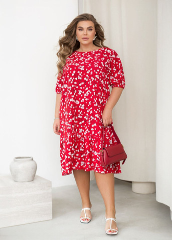 Товары, интересные покупателям no Brand бежевое повседневный, кэжуал платье летнее миди с короткими рукавами и воланом оверсайз, а-силуэт с цветочным принтом с воланами с рукавом до локтя штапель - производство – Украина на сезон "Лето"