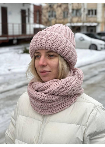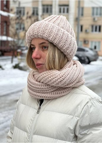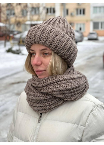 Теплый Комплект Джинжер. Коплектация: шапка+хомут(восьмерка). Крупная вязкая одинарная с 2 отворотом No Brand | женщинам черный зима (362917658) бренда No Brand также покупают с такими товарами