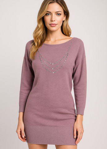 Sassofono светло-серое кэжуал платье меланжевое со стразами, со стразами вязаное с длинным рукавом вискоза - производство – Турция бренда Sassofono также покупают с такими товарами