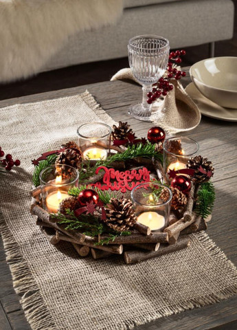 Топ товаров в категории новогодний декор, которые интересны покупателям рождественский венок-подсвечник «Winter Magic» из натуральных материалов 28см Красный (7858) Livarno home (363135314)
