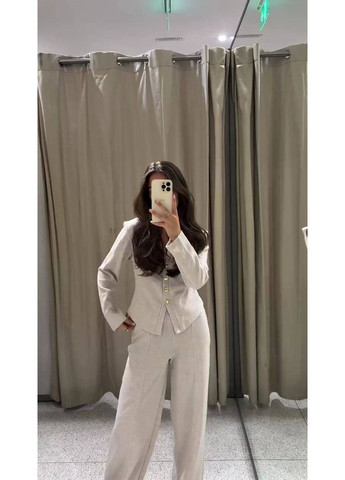 Товары, интересные покупателям no Brand женский костюм с приталенной кофтой и широкими брюками. брючный однотонный светло-коричневый ангора производство — Украина на сезон "Демисезон"
