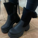 Товары, интересные покупателям let's Shop Черные зимние ботинки казаки на танкетке искусственный нубук молния без декора носок узкий производство - Китай на сезон "Зима"
