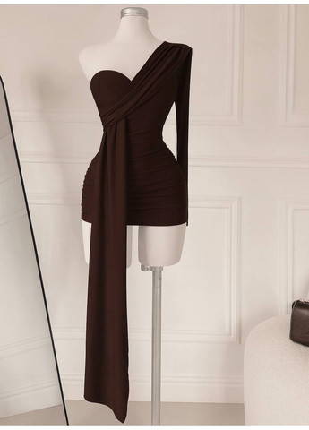 No Brand темно-бордовое повседневный, коктейльное, вечернее, кэжуал женское платье на одно плечо однотонное без декора с длинным рукавом трикотаж - производство – Украина бренда No Brand также покупают с такими товарами